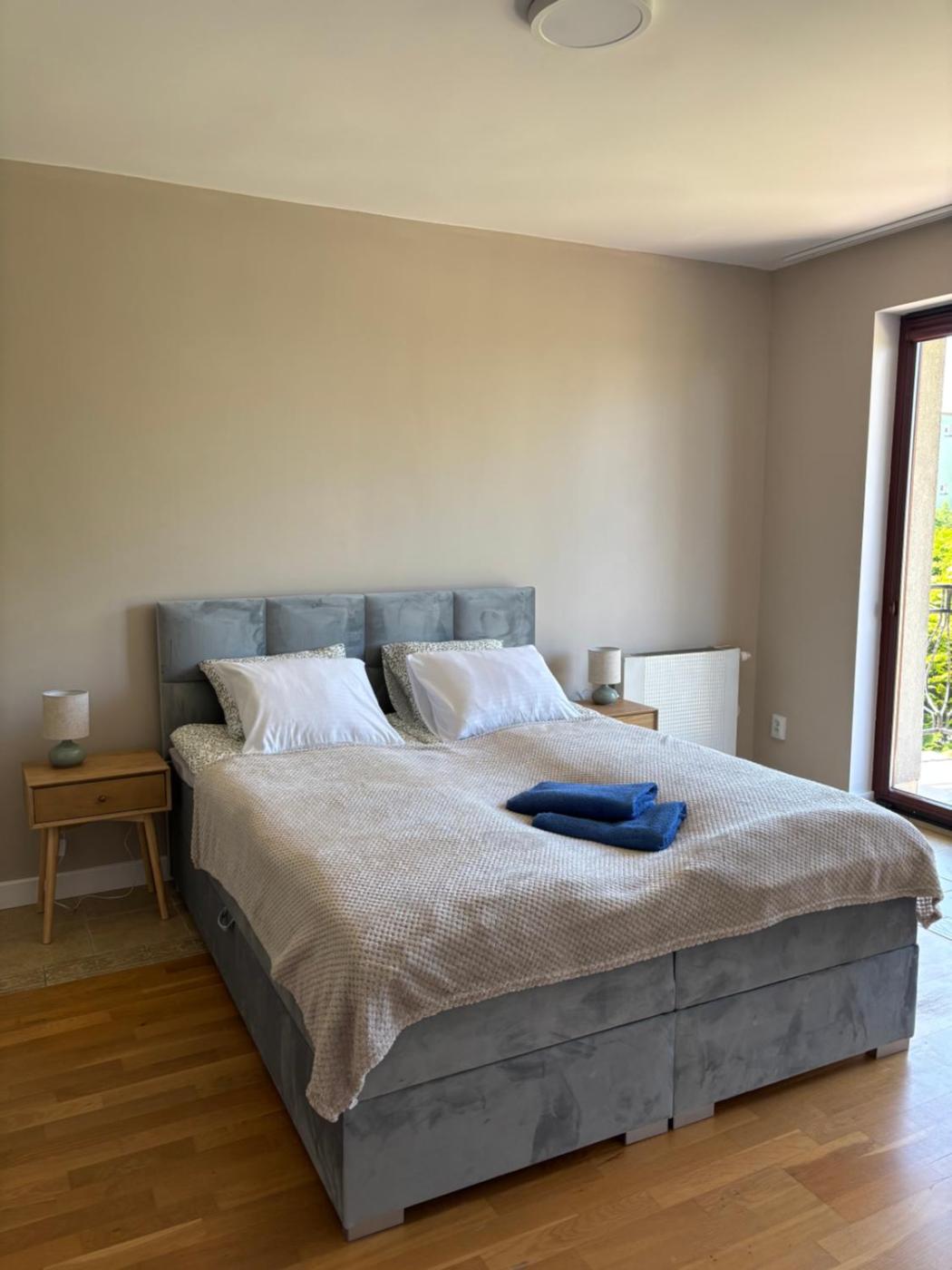Apartament. This spacious apartment is comprised of 1 living room, 1 separate bedroom and 1 bathroom with a shower and a hairdryer. The well-equipped kitchen features a stovetop, a refrigerator, a dishwasher and kitchenware. Featuring a terrace with garden views, this apartment also offers a wardrobe and a flat-screen TV with streaming services. The unit offers 2 beds. Apartament - 4 osobowy. Powierzchnia pokoju ok.: 70 mkw.